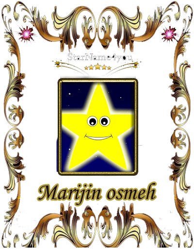 U čast Marije M. International id: HD92223 Constellation - Leo koordinate: 10h 39' 10,04" +14° 43' 57,4" Tvoj osmeh, u jednom lavu večno će sijati